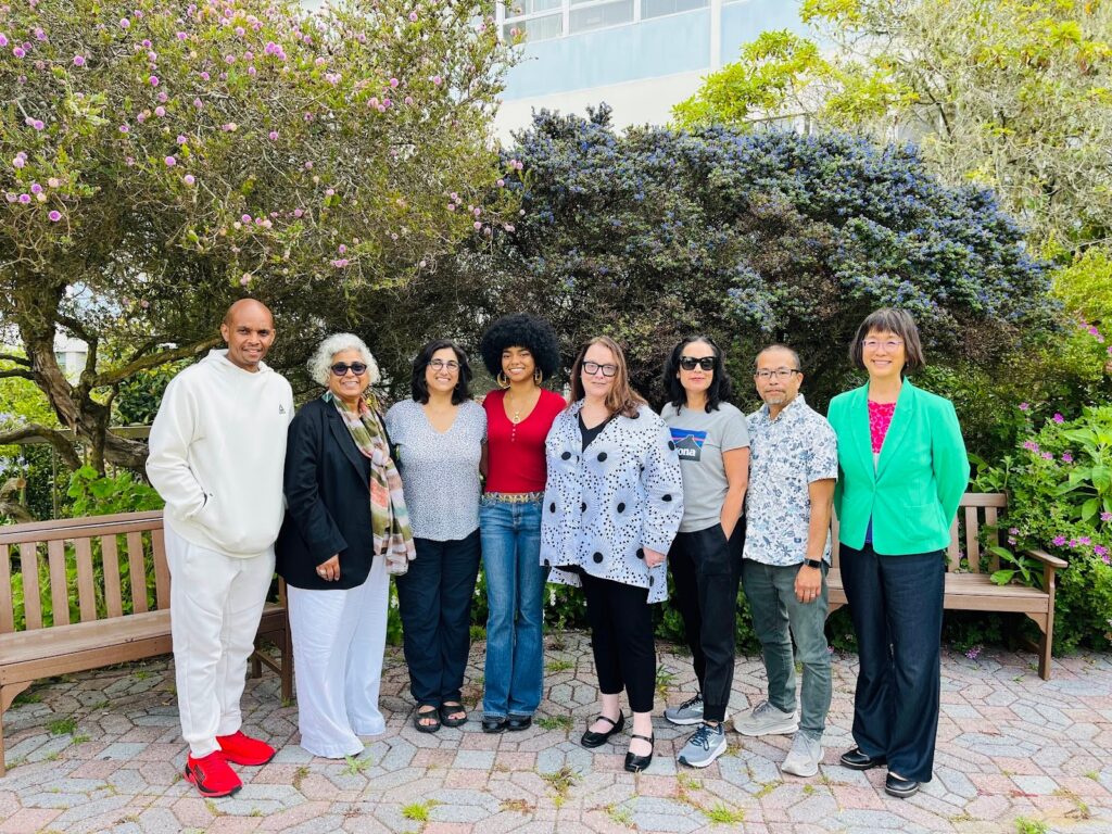 (from left to right – Africana Studies Chair Abul Pitre, Associate Dean Eileene Tejada, Race and Resistance Studies Chair Falu Bakrania, VerĂ³nica Turner Associated Students College of Ethnic Studies Rep, American Indian Studies Chair Joanne Barker, Latino/a Studies Chair Katynka Martinez, Asian American Studies Chair Wesley Ueunten and Dean Grace Yoo.)